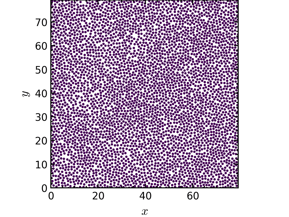 traj.animate('./particles-animation.gif', xlabel=r'$x$', ylabel=r'$y$')